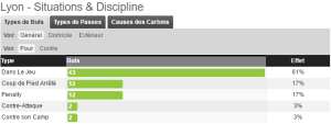 Autre point rassurant (heureusement qu’il y en a quelques-uns), Lyon peut bénéficier de son réalisme sur coups de pieds arrêtés, réel point fort. Mais réelle dépendance aussi. 34% des buts lyonnais sont inscrits sur coups de pieds arrêtés, dont la moitié sur penalty. Encore 2 buts inscrits de la sorte hier ! Où serait Lyon sans sa capacité à scorer sur phases arrêtées ? Mais là encore, une dépendance inévitable face à l’absence systématique de jeu. L’un doit devenir une force de l’autre, jamais se substituer.