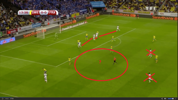 Au moins, ce qu’il y a de pratique en alignant les mêmes équipes, c’est que le contenu des matchs est assez similaire et les analyses plus faciles à faire. Dans ce 4-2-3-1 toujours aussi pourri, les français ont à nouveau abusé des centres face à la Suède. La quasi totalité des occasions (y compris le but de Giroud) sont venues d’un centre, la plupart du temps de Mendy, Sidibé étant à nouveau bien trop en dessous.