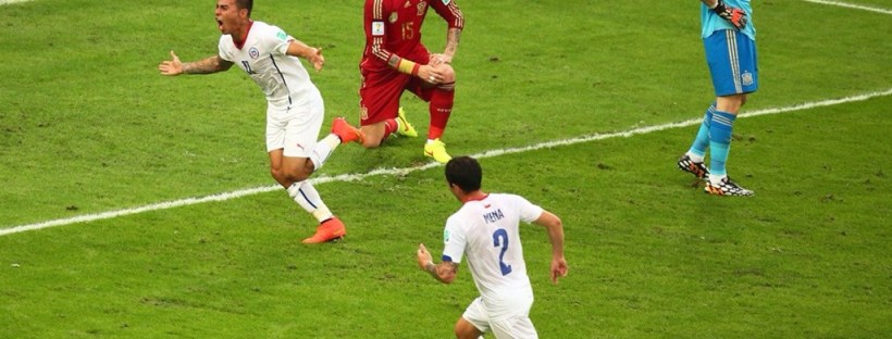 Après une pâle défaite 2-0 face au Chili, les Espagnols sont éliminés de la Coupe du Monde, après deux petites rencontres seulement. Le Chili est qualifié pour les huitièmes, au profit des Champions du Monde en titre. Coup de tonnerre sur la planète foot. Cette fois ça y'est, une page se tourne, le coup de … Lire la suite Espagne – Chili : Quel coup de tonnerre !